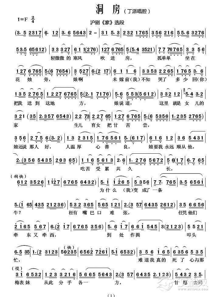 戏曲曲谱庭院内空落落一片沉寂(《包公休妻》选段)