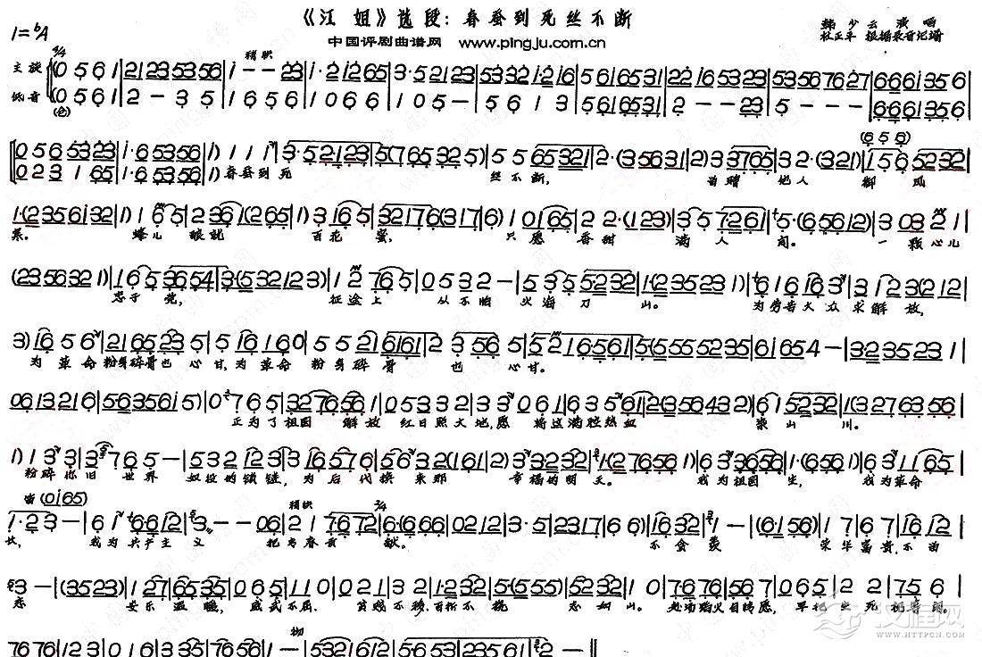 戏曲曲谱绣红旗(《江姐》选段)