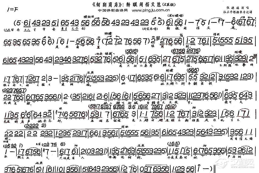 戏曲曲谱病房(《人面桃花》选段)