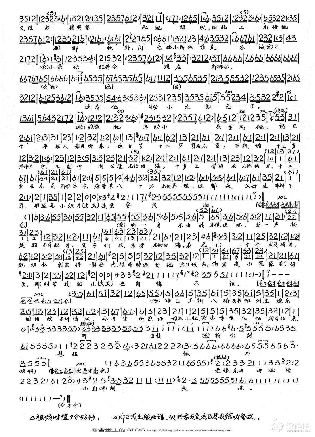戏曲曲谱绵绵古道连天上(《蝶恋花》选段、琴谱)