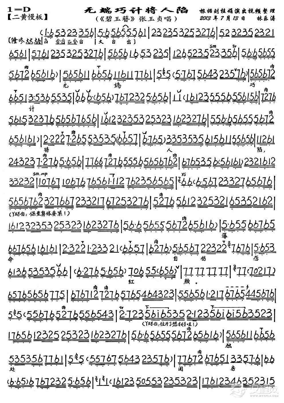戏曲曲谱春花谢残花飞满天飞遍(《黛玉葬花》选段、琴谱)