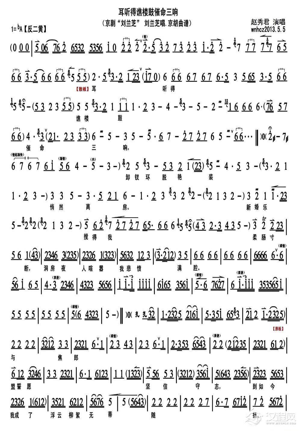 戏曲曲谱口号声声声响响在我的心上(《山城旭日》选段、琴谱)
