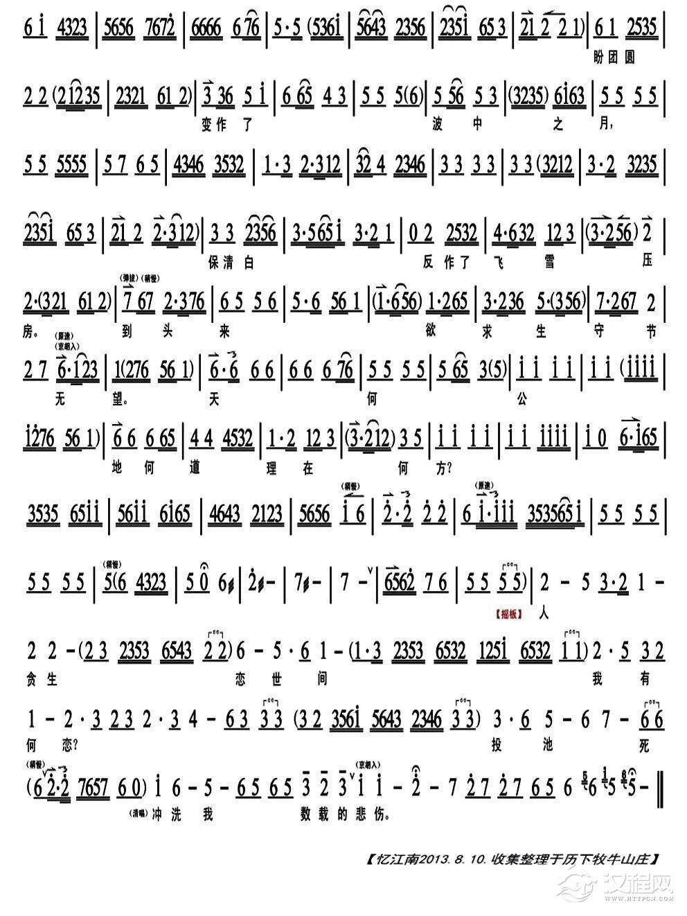 戏曲曲谱身归国兮儿莫知随(《文姬归汉》选段、琴谱)