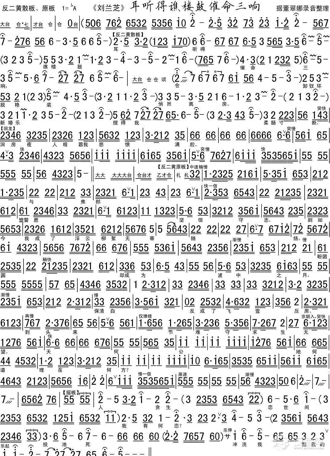 戏曲曲谱李胜素《苏三起解·行路》唱腔剪辑(琴谱)