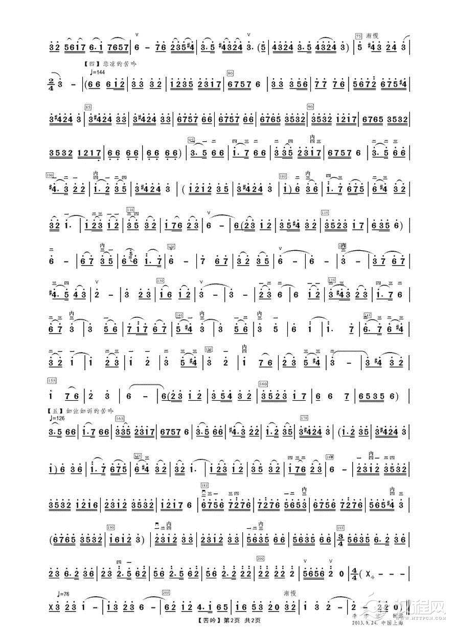 月儿高(民族管弦乐曲长膜笛分谱)