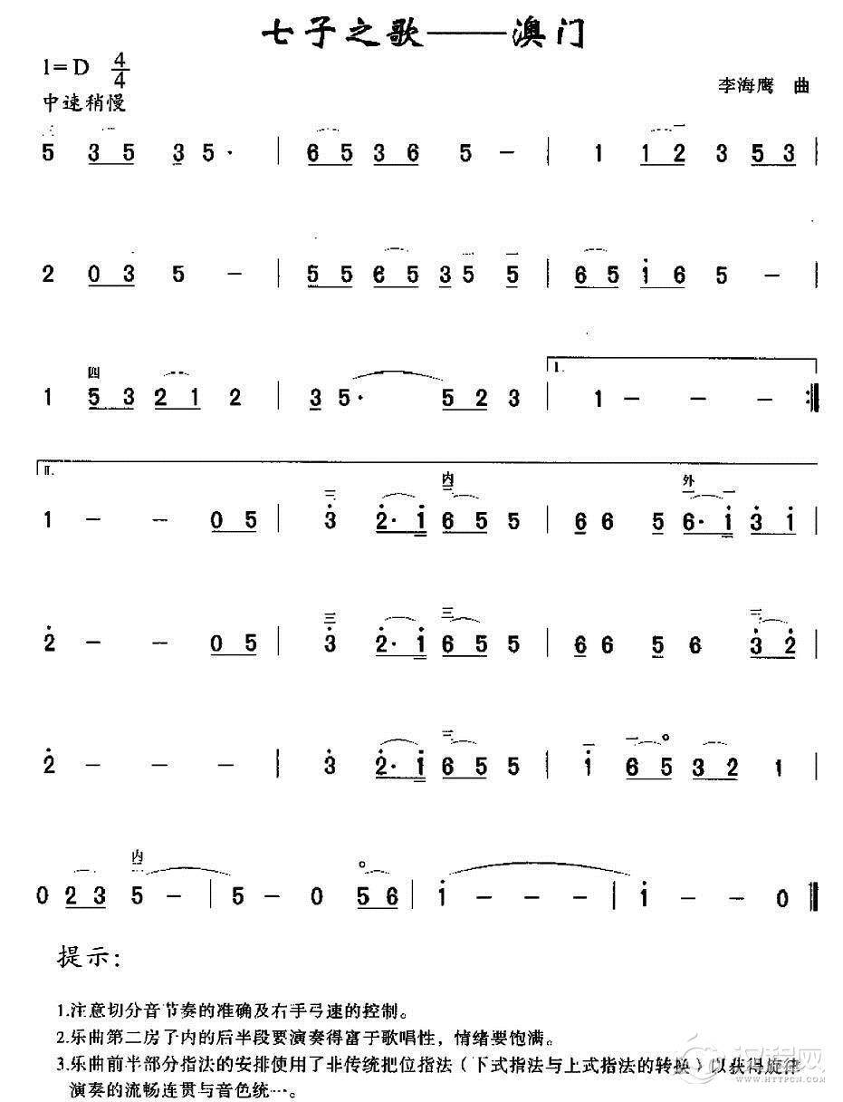 古筝谱《彩云追月》