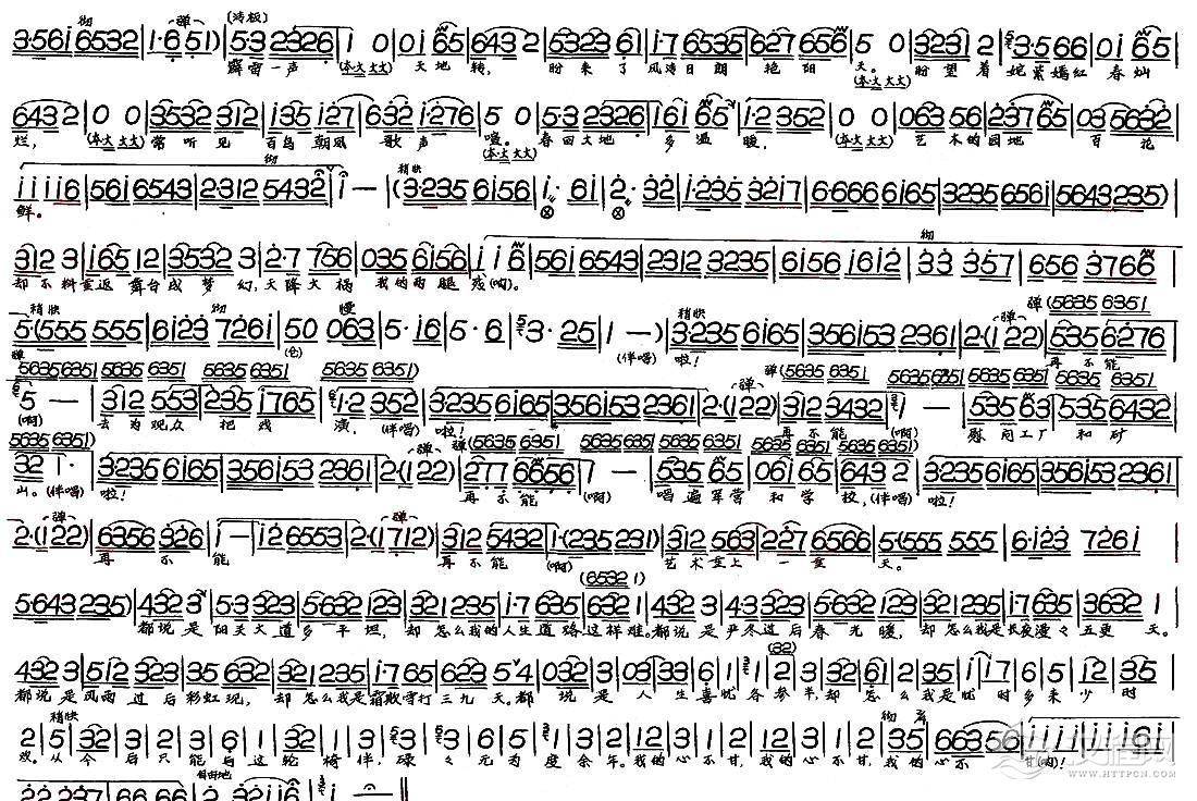 戏曲曲谱人生苦乐本无常(《杨乃武平冤记》选段)