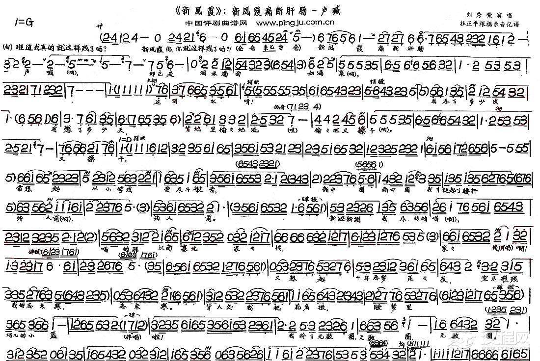 戏曲曲谱庭院内空落落一片沉寂(《包公休妻》选段)