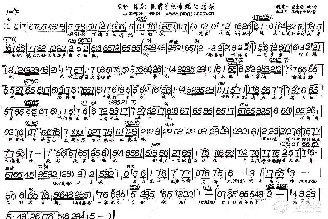戏曲曲谱人生苦乐本无常(《杨乃武平冤记》选段)