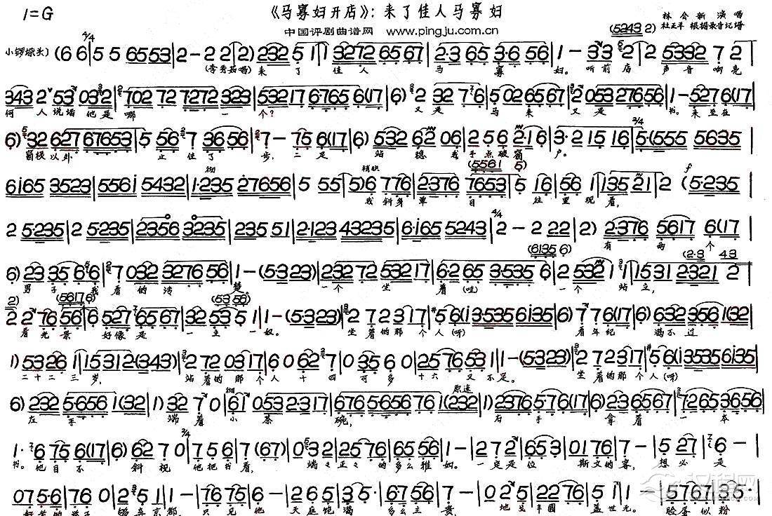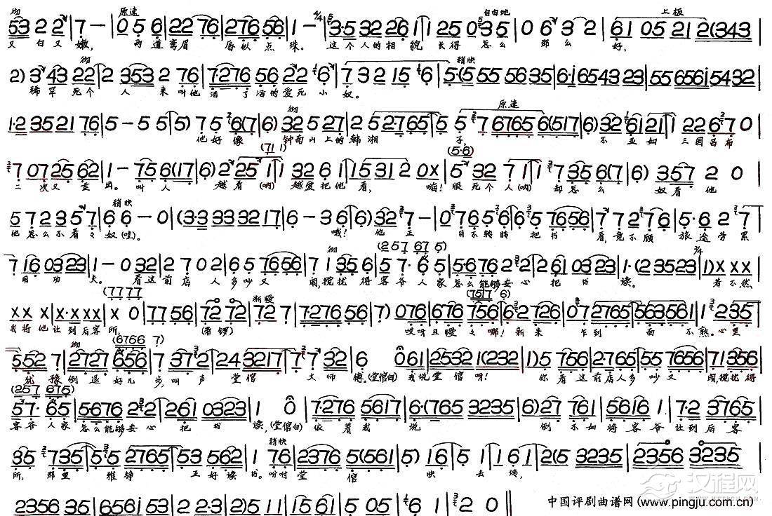 戏曲曲谱店家托灯前引路(《马寡妇开店》选段)