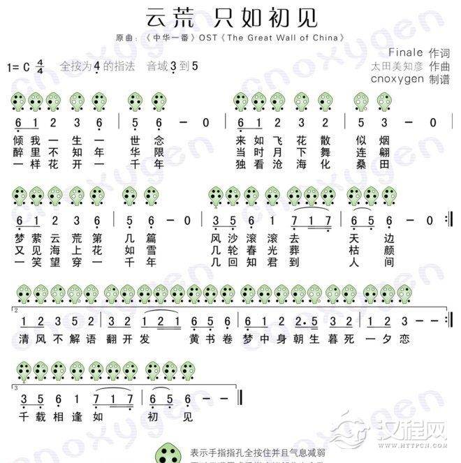 高清6孔陶笛彩谱:云荒 只如初见(原曲《中华一番》OST《The Great Wall of China》)-