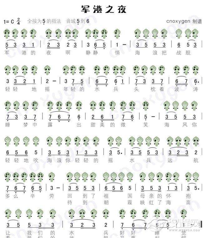 曲谱大全高清6孔陶笛彩谱:快乐天堂