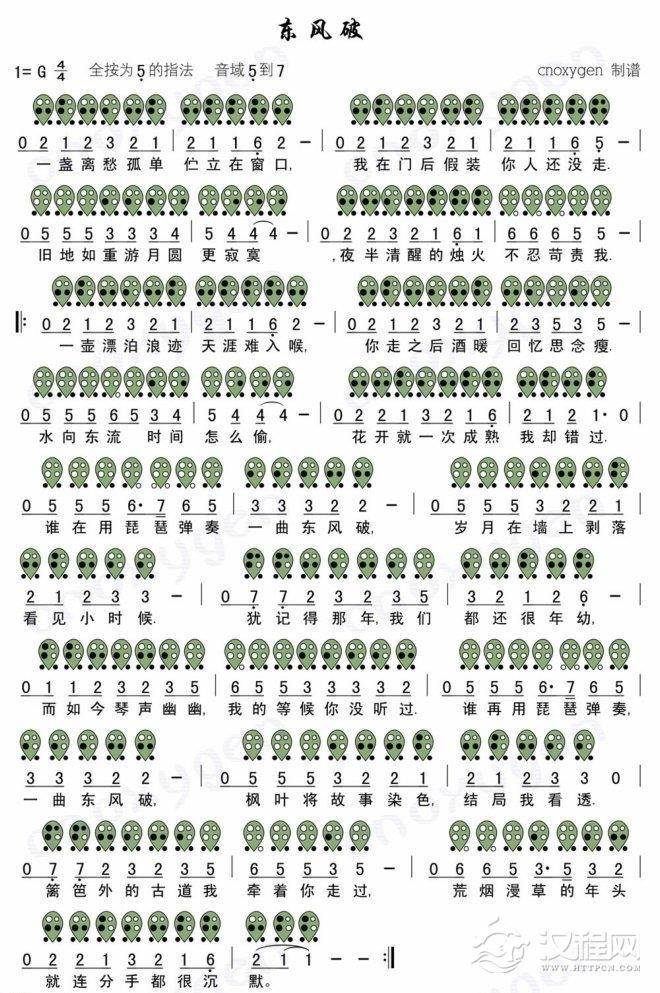 曲谱大全高清6孔陶笛彩谱:菊花台