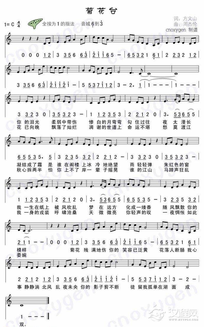 曲谱大全高清6孔陶笛彩谱:东风破