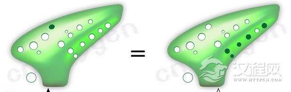 还有的附管陶笛的附管上的指孔比左图的多,比如右手无名指并列有两个指孔,这两个指孔在一般情况下是一起按,和图中的没有什么区别,只有在需要半音阶的时候才分开按。