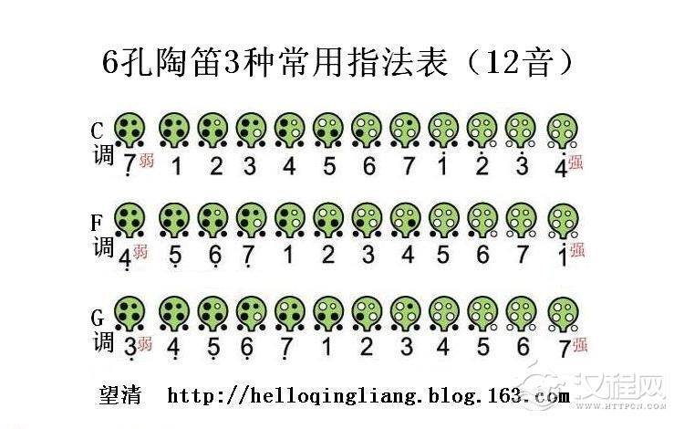 6孔陶笛指法全表: