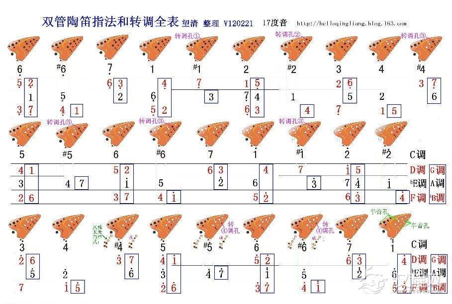 乐器学习双管AC陶笛指法表