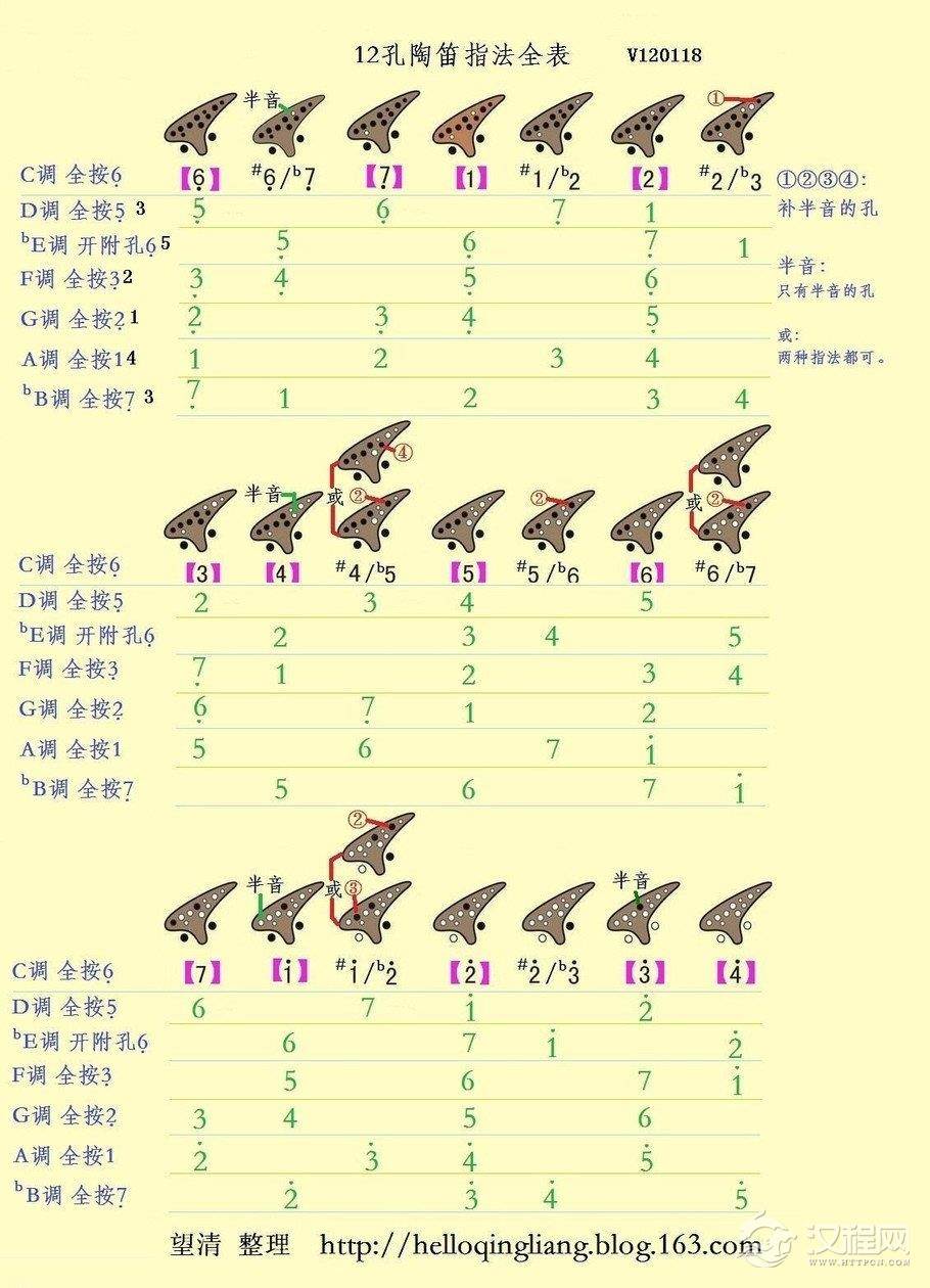 乐器学习详解十二孔陶笛基本指法,十二孔陶笛基本指法表图片