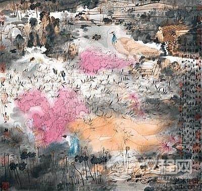 因此,当代中国画应再次强调写意的精神性表现,把“写”和“意”作为一个统一体,不能为了“写”而“写”、为了“泻”而“泻”,忽视内里的表现;而应重点关注“意”的层面,也就是作品要有情趣、有兴趣,要经历学养的积累和修行阶段,尤其是要有新的时代感,要表现当代人的生活。除此之外,还要有新的笔墨、新的造型观、新的章法,也就是新的现代感。要把民族文化精神的厚度与当代人文关怀的深度结合起来。当然,这是一个需要我们不断思索和实践的重要课题。(文右二图均为卢禹舜的国画作品,上者为《精神家园一》,下者为《精神家园二》)