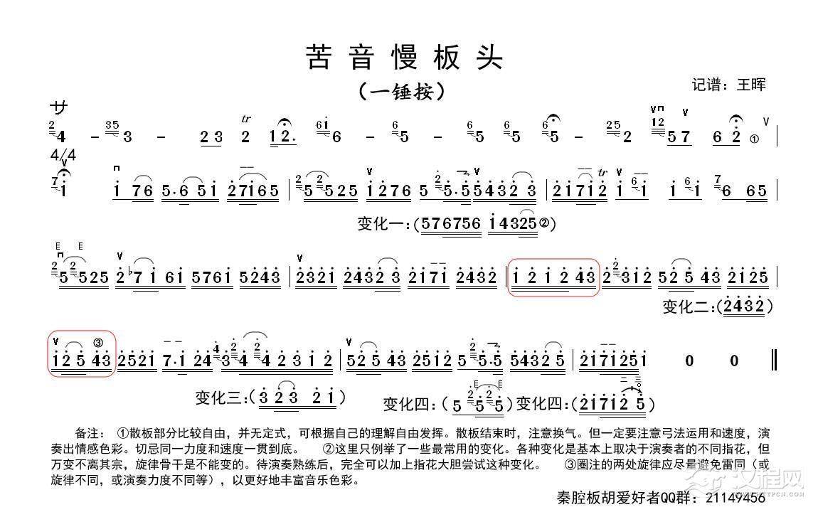 曲谱大全秦腔花音慢板板头(板胡)