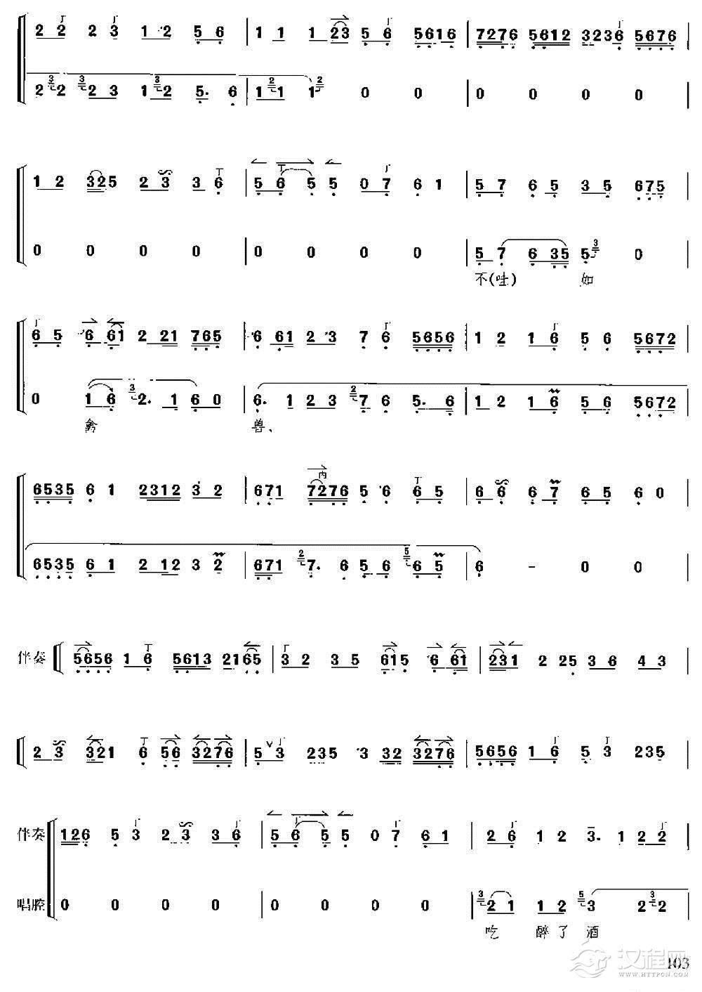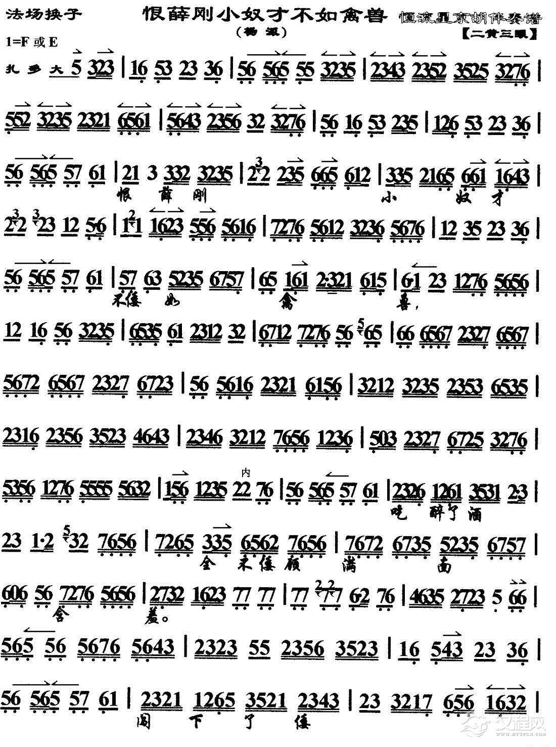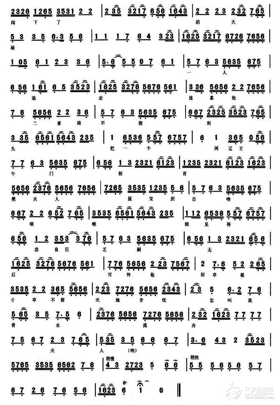 戏曲曲谱萧何丞相(《未央宫》唱段、琴谱)