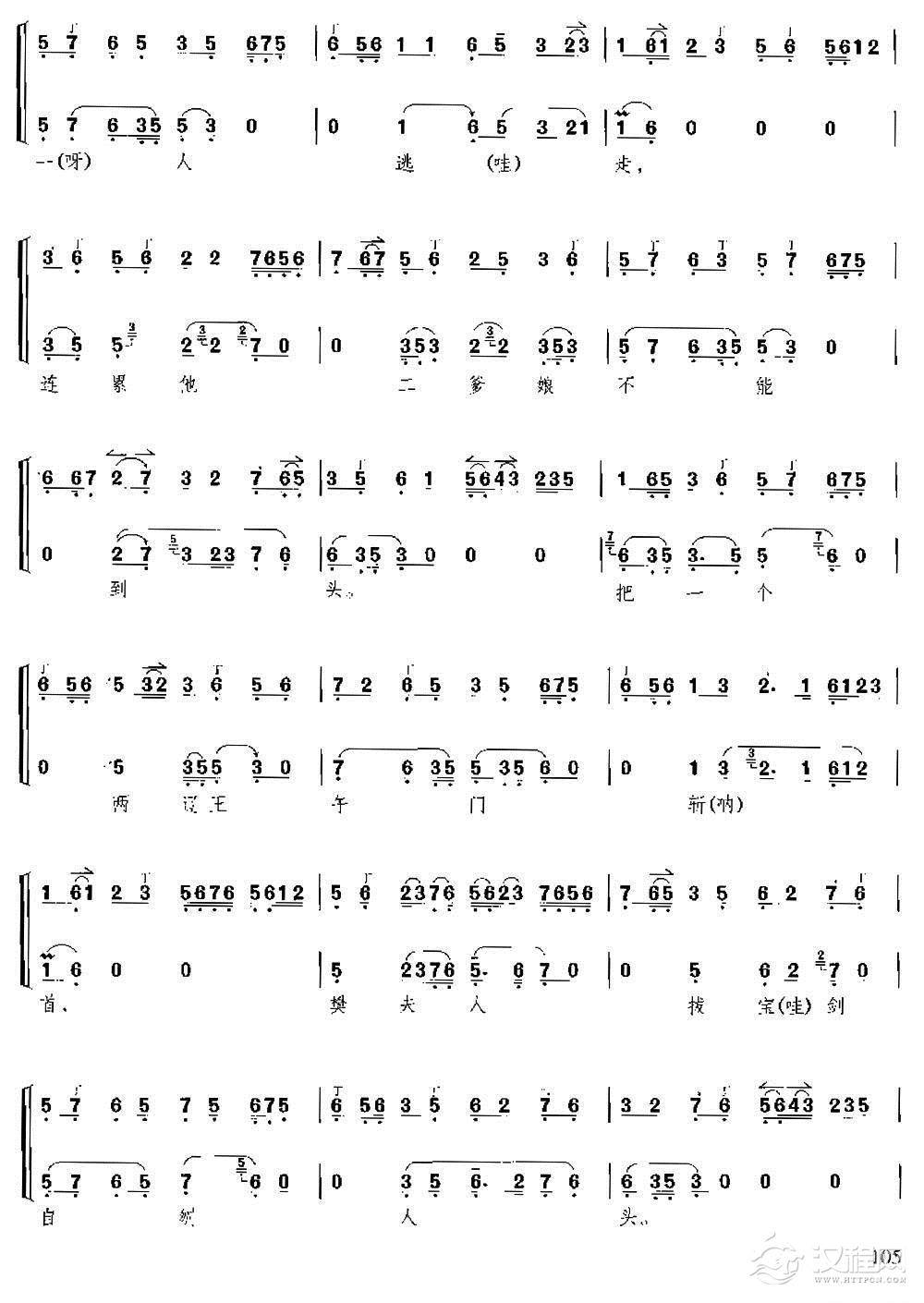 戏曲曲谱大宝他爹你为何不把家还(《六号门》胡二、胡二妻唱段、琴谱 )