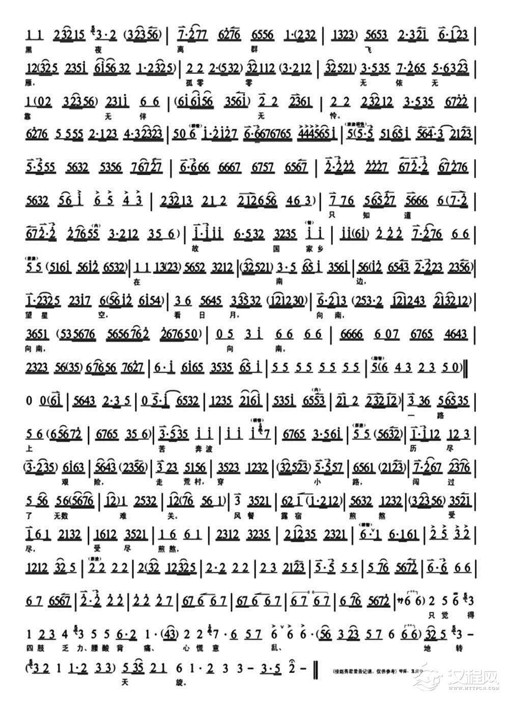 戏曲曲谱萧何丞相(《未央宫》唱段、琴谱)