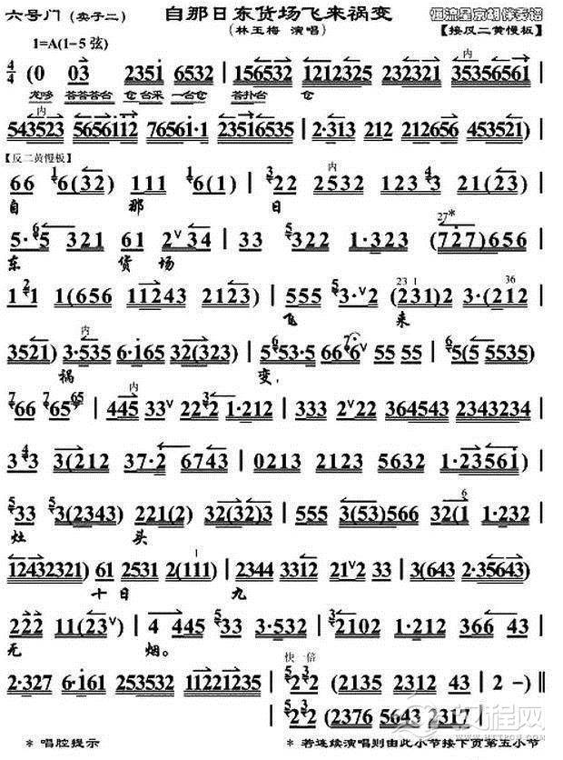 戏曲曲谱爆竹响震耳鼓声声不断(《六号门》胡二妻唱段、琴谱)