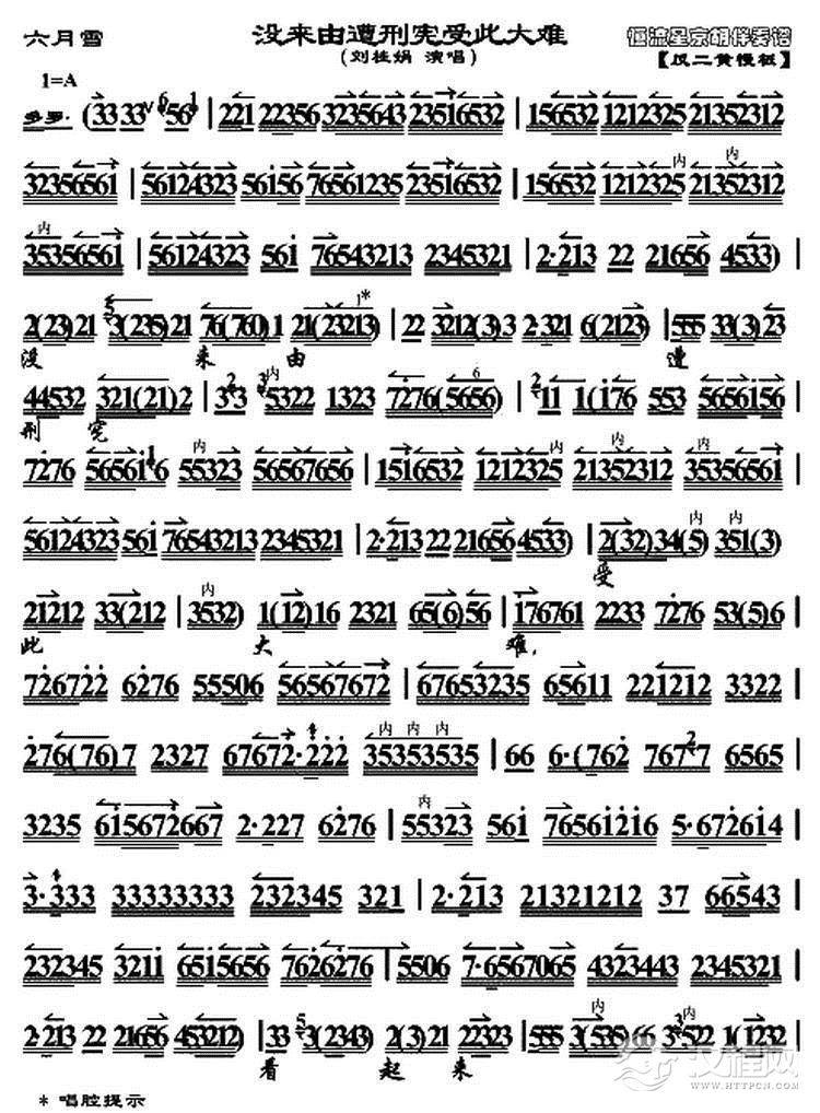 戏曲曲谱未开言思往事心中惆怅(《六月雪》选段、刘桂娟演唱版、琴谱)