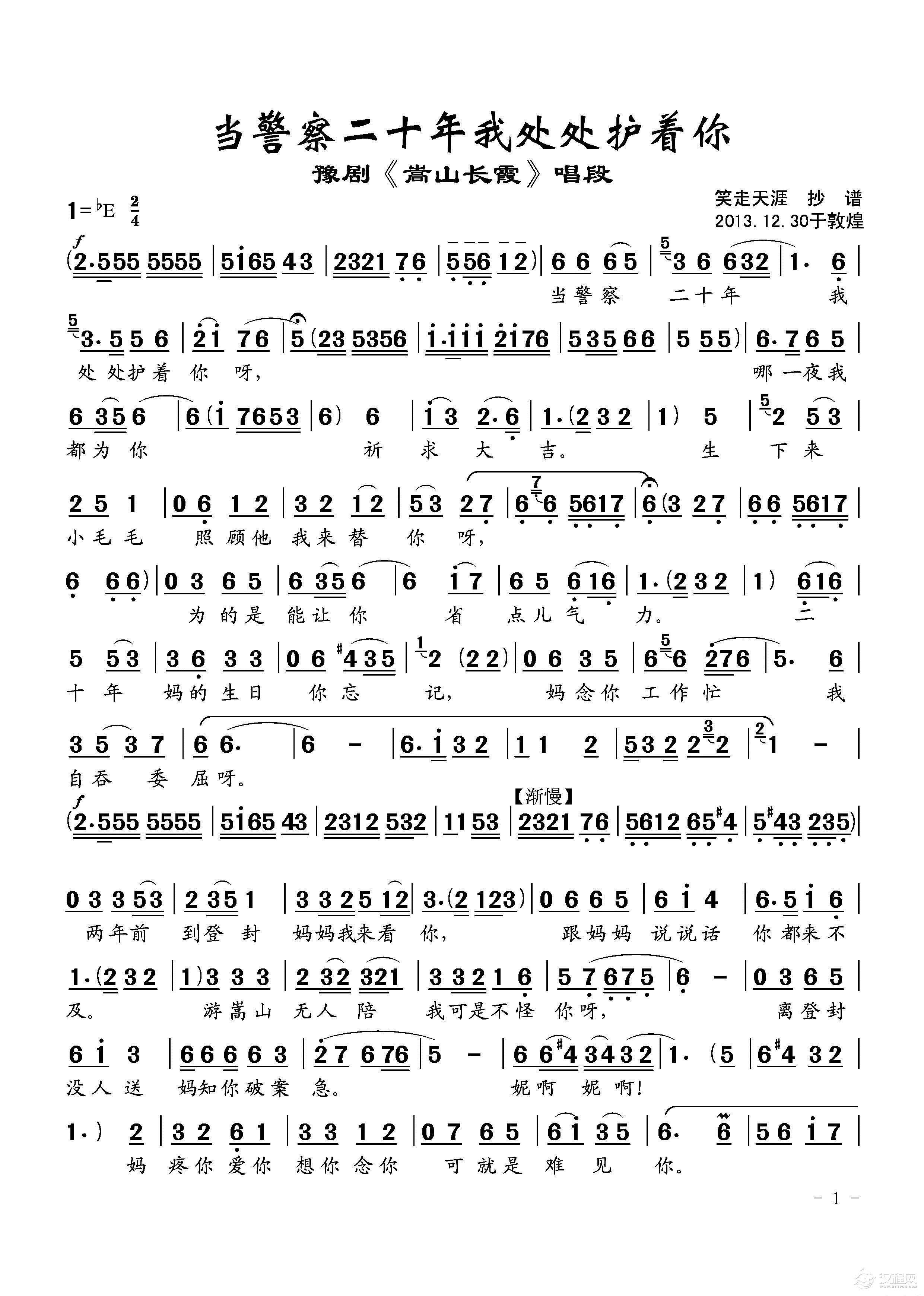 戏曲曲谱平了贼儿回家再孝双亲(《花木兰》选段)