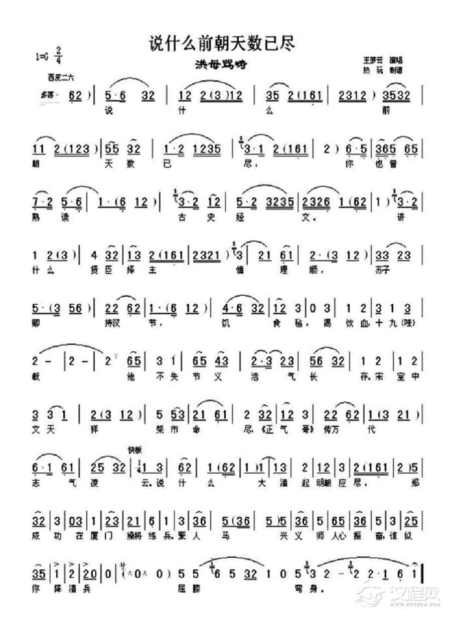 戏曲曲谱指着西凉高声骂(《武家坡》选段、琴谱)