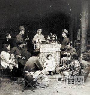 扬琴艺人走街串巷卖唱的情景