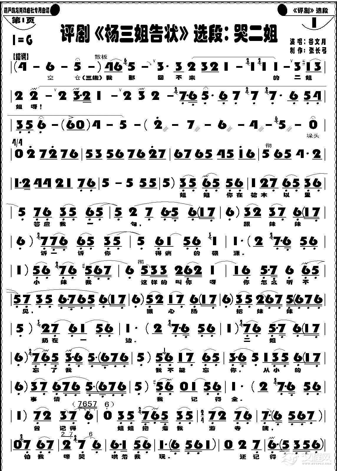 戏曲曲谱香莲状告陈世美(《秦香莲》秦香莲唱段、琴谱)