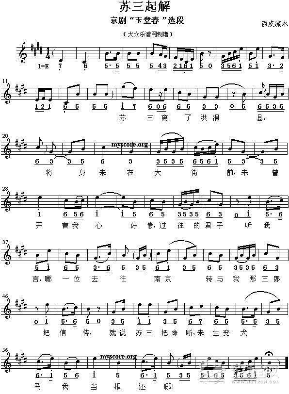 戏曲曲谱听我表表十月花名(《卖水》选段、琴谱)