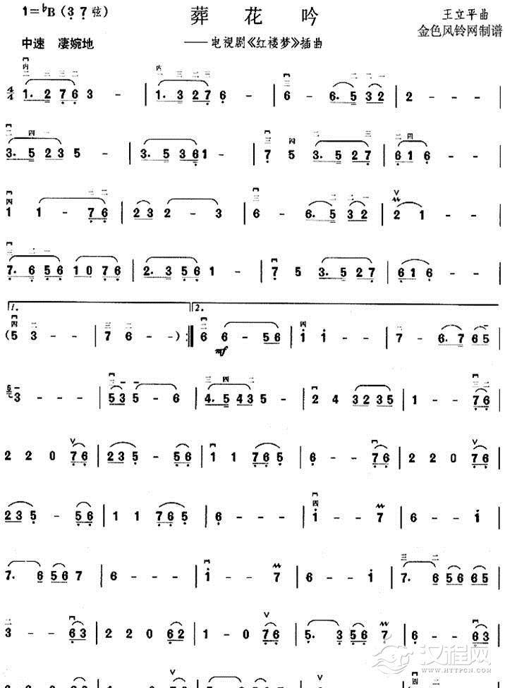 葬花呤二胡曲谱
