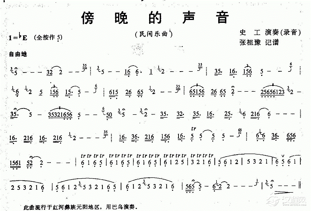 曲谱大全葫芦丝曲谱精选:小河淌水