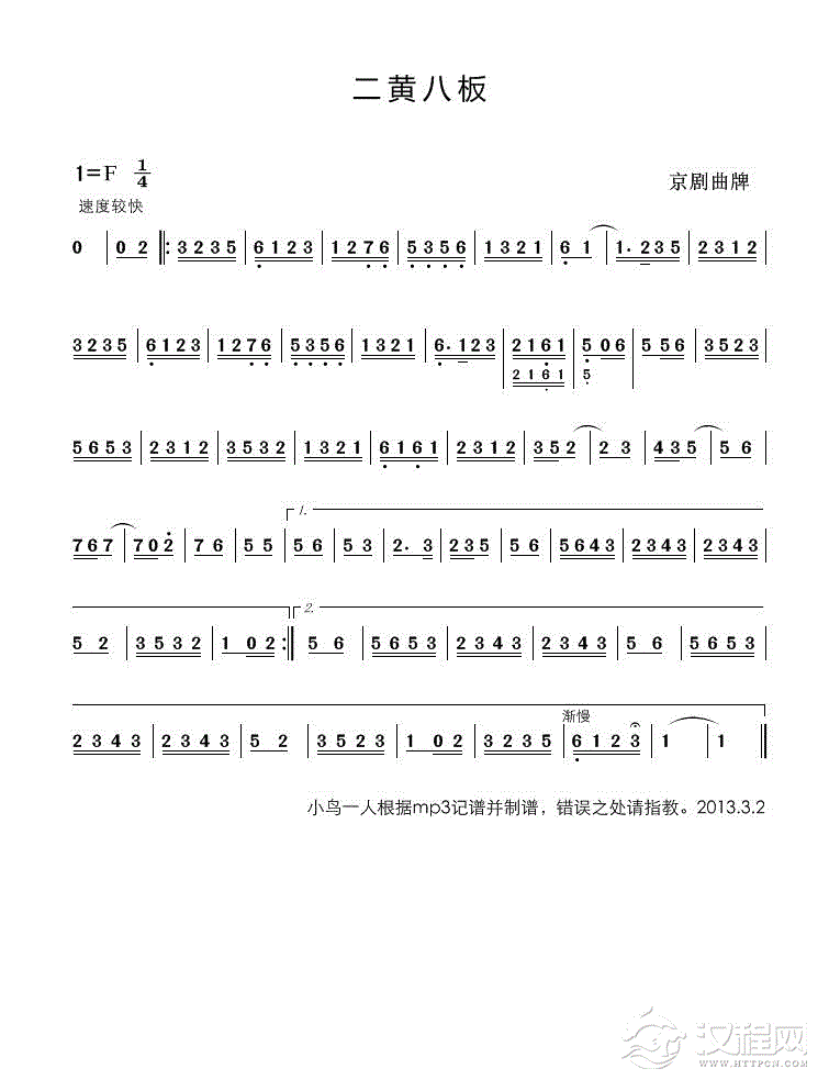 戏曲曲谱打虎上山(主旋律)2