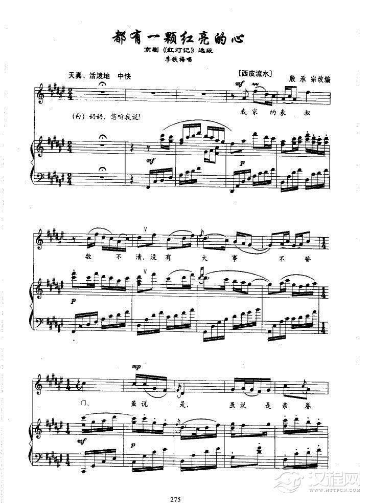 戏曲曲谱都有一颗红亮的心(《红灯记》李铁梅唱段)