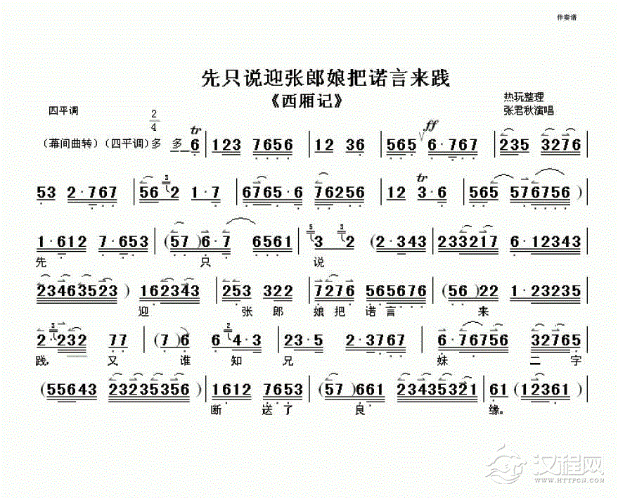 戏曲曲谱分明是动人一曲凤求凰(《西厢记》选段 [伴奏谱])