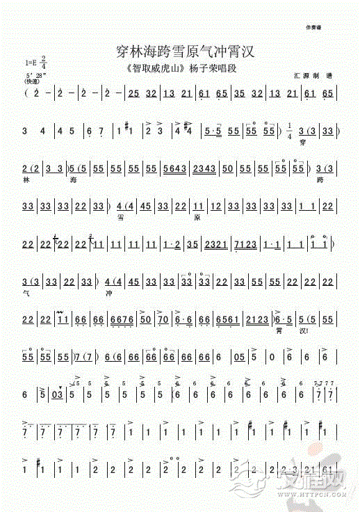 戏曲曲谱辕门外三声炮如同雷震