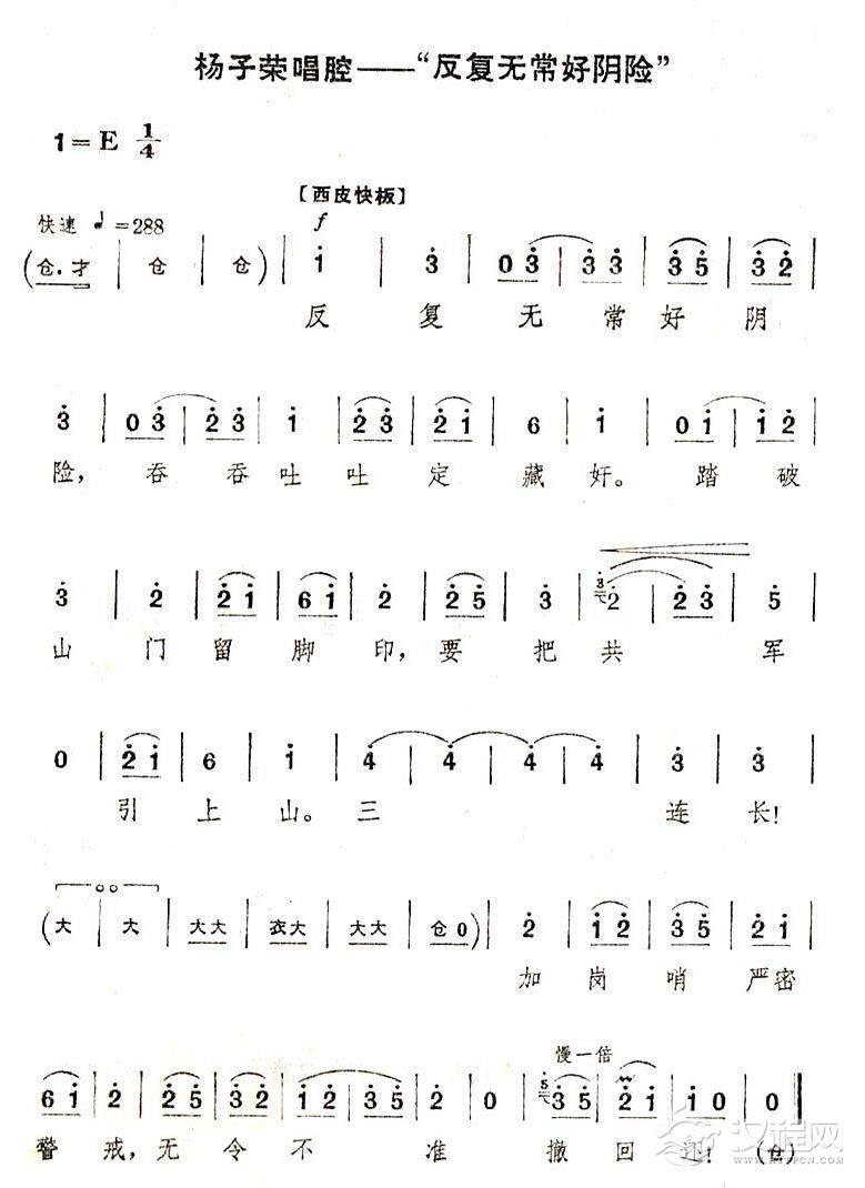 戏曲曲谱心潮难平(《智取威虎山》选段)