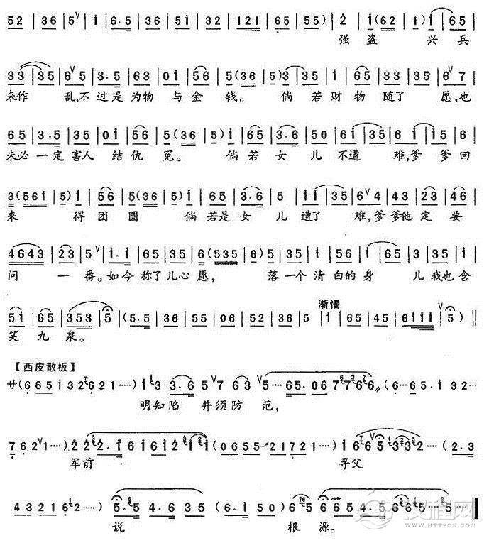 戏曲曲谱玉堂春含悲泪忙往前进(张派 、《苏三起解》苏三唱段)