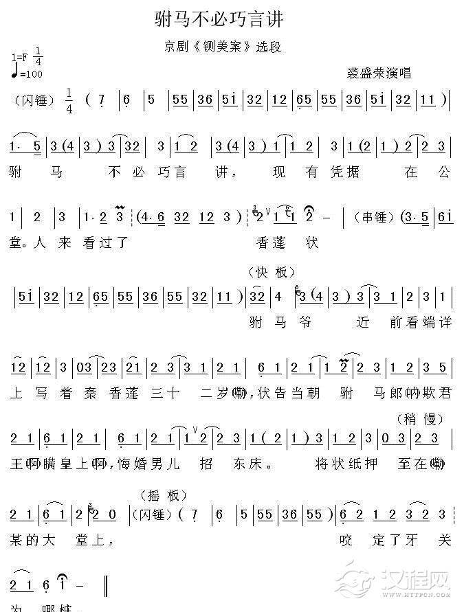 戏曲曲谱上写田伦顿首拜(《四进士》宋士杰唱段 [版本二])