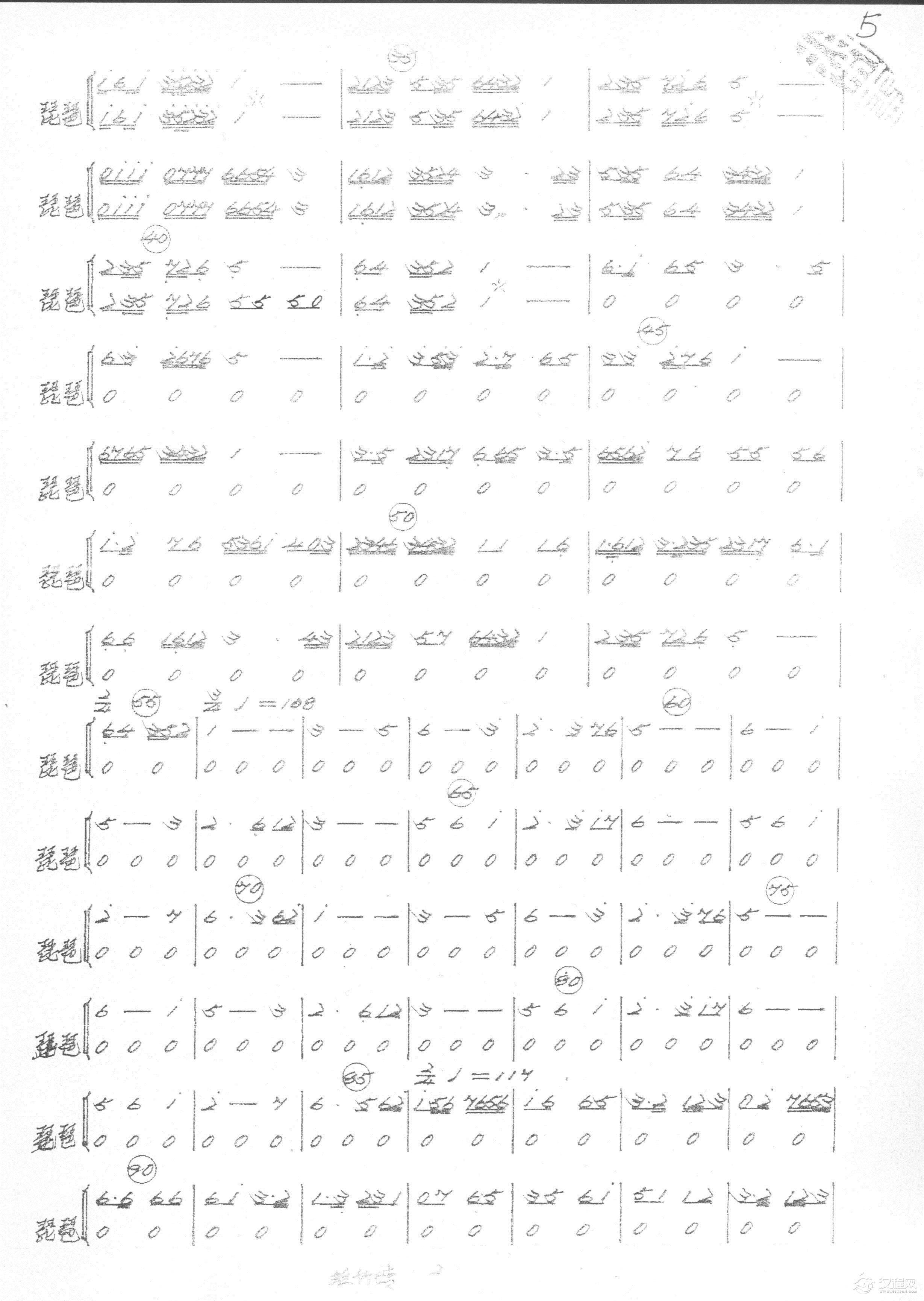 曲谱大全山中的小兰花(琵琶分谱)