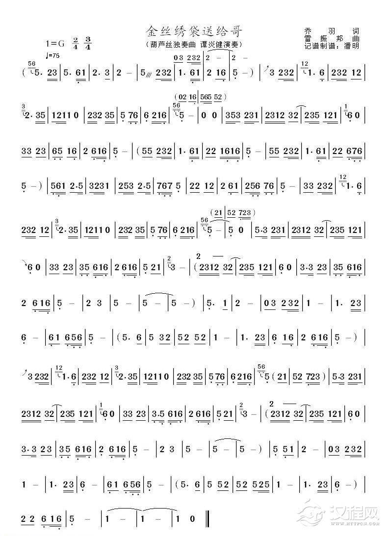 曲谱大全葫芦丝独奏:欢乐的泼水节