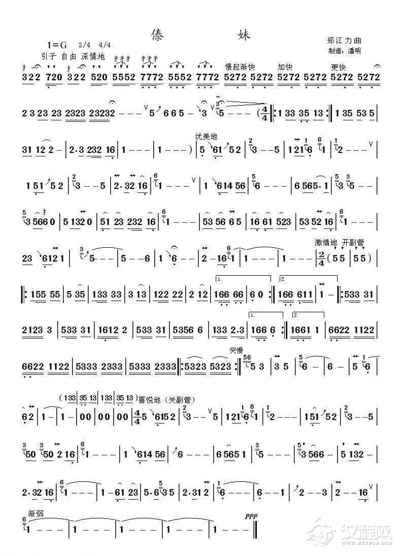 曲谱大全葫芦丝独奏曲:傣家妹