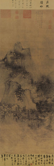 《层岩丛树图》,北宋 巨然 绢本墨笔 纵144.1厘米 横55.4厘米 台北故宫博物院藏 -