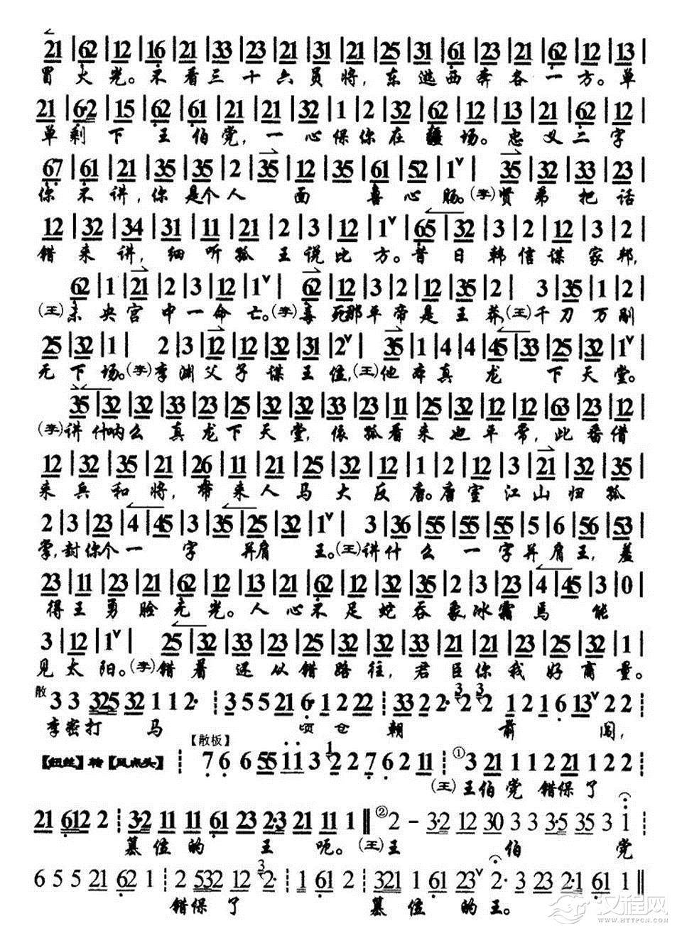 戏曲曲谱指着西凉高声骂(《武家坡》选段、琴谱)