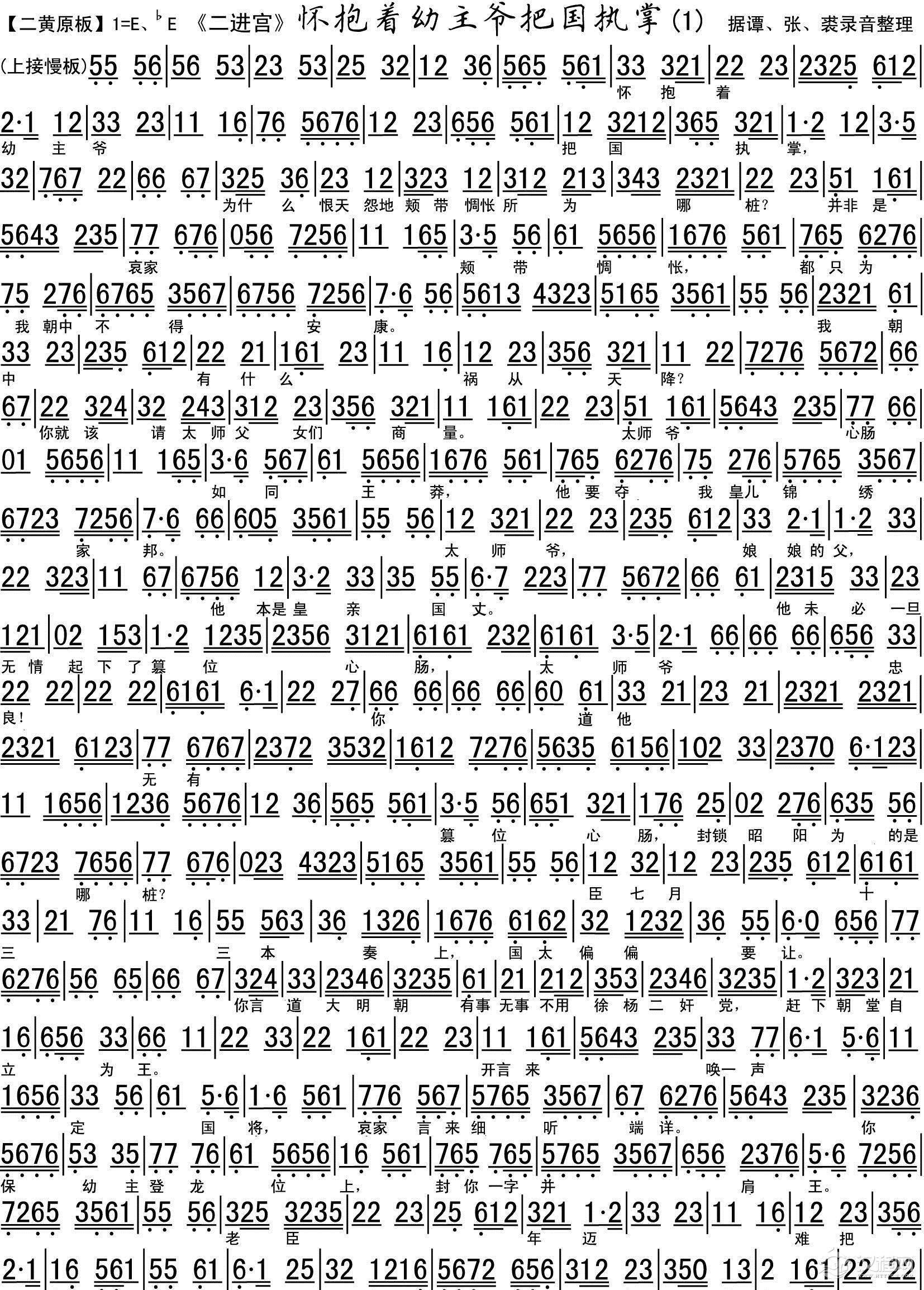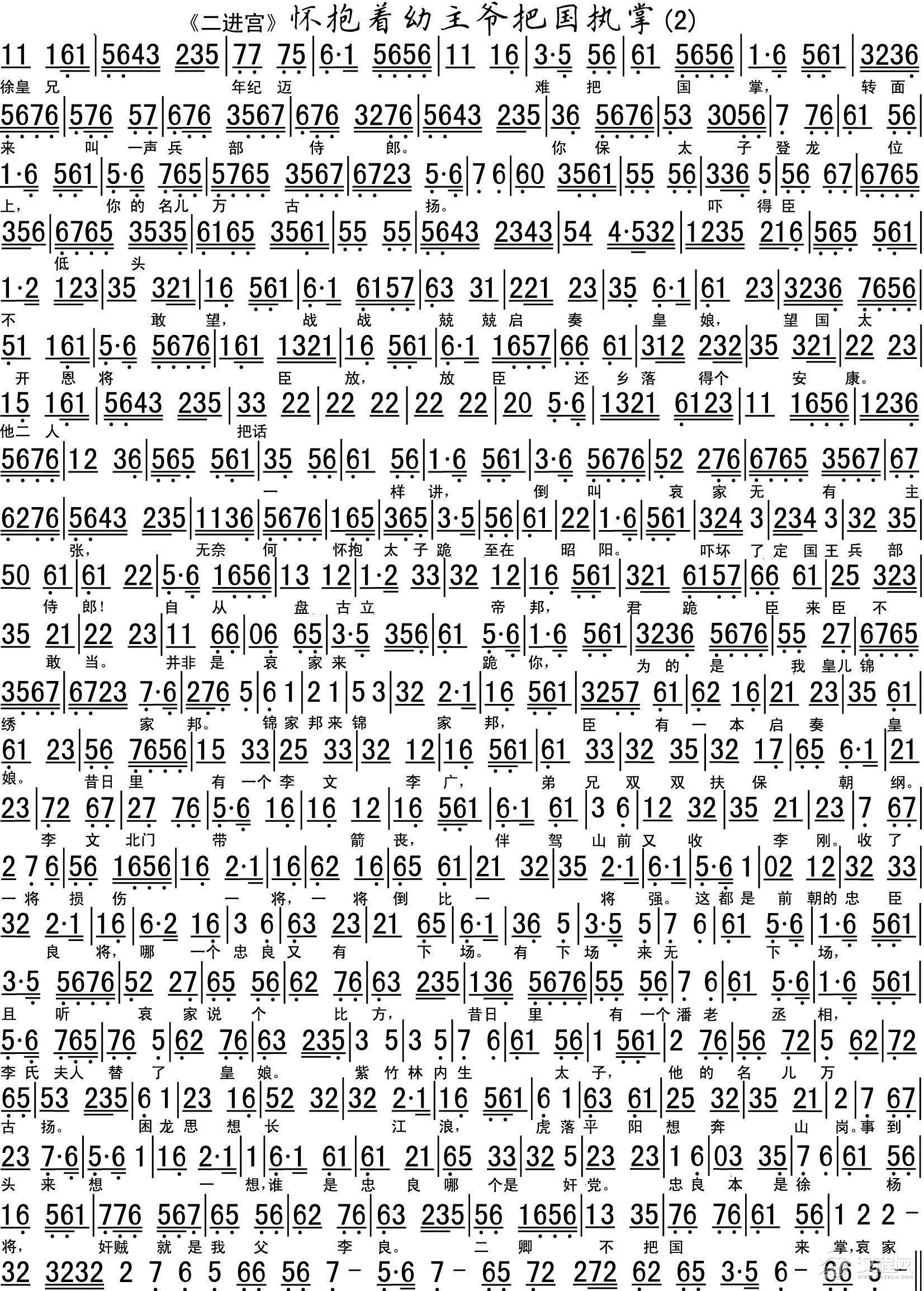 戏曲曲谱天地泰日月光秋高气爽(《大探二.二进宫》选段、琴谱)