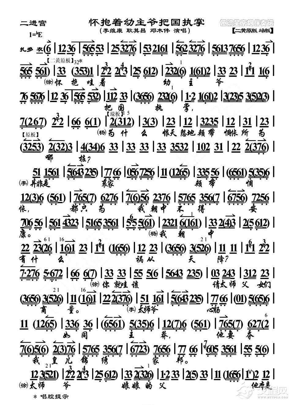 戏曲曲谱太师爷奏一本令人惊诧(《大探二·大保国》李艳妃唱段、琴谱)